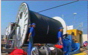 Bobine de câble optique sous-marin.